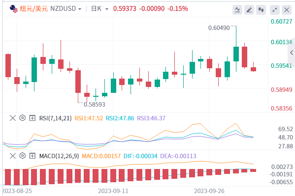 10月3日,周二亚市早盘,纽元/美元跌至0.6000关卡上方後,仍在0.5900下方面临抛压。美元反弹和美债殖利率上升打压纽元/美元。纽元/美元目前交投於0.5938附近,当日下跌0.13%。 美国供应管理协会(ISM)周一公布的数据显示,9月美国制造业经营状况持续萎缩。9月美国ISM制造业采购经理人指数从8月的47.6升至49.0,高於期值47.7。此外,美国9月ISM制造业物价支付指数从48.4降至43.8。就业指数从48.4攀升至51.2。最後,新订单指数从46.8增加到49.2。 周二早些时候,美联储克利夫兰银行行长洛雷塔-梅斯特(LorettaMester)表示,美联储今年可能还需要升息一次,货币政策路径将取决於经济表现。此外,周一美联储理事米歇尔-鲍曼(MichelleBowman)表示,进一步提高政策利率并将利率维持在限制性水平一段时间可能是合适的。 同时,美联储负责监管的副主席麦可-巴尔表示,央行应谨慎对待货币政策。他说,最重要的问题不是利率将上调多大幅度,而是利率将在足够限制性的水平上维持多久。也就是说,美国经济数据向好且大多数美联储官员发表鹰派言论还是提振了美元(USD),并打压纽元/美元。 纽元方面,纽储行(RBNZ)将於周三公布利率决定。市场预计纽储行将维持5.5%的利率不变。不过,交易商将密切关注会後声明。纽储行释放任何有关进一步加息的信号都可能阻止纽元/美元下行空间。 接下来,纽储行(RBNZ)周三的货币政策会议将成为焦点。美国方面,重点将是美国就业数据,周三将公布ADP就业人数变化,周五将公布非农业就业数据。 纽元/美元技术分析 RSI技术指标小于中性区域50。MACD技术指标呈现看跌状态并处在其信号线的上方。此外,价位处在其20天及50天移动平均线下方(当前是0.5952和0.5973)。 ![]() |