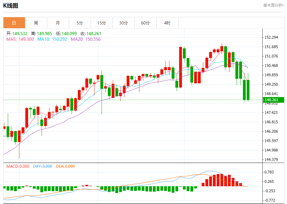 支撑位:148.10 147.75 147.35