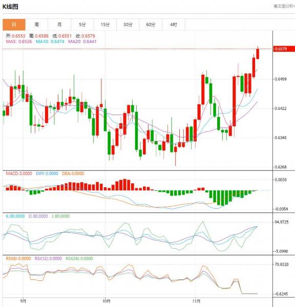 澳元兑美元行情走势分析: 11月7日澳大利亚央行会议的纪要显示,非常接近加息25个基点,目标是锚定通胀预期。在委员会最近的预测中,需要注意的关键是数据中包含的进一步加息的假设。与其他主要央行相比,澳大利亚现金利率相对较低,这一决定变得容易了一点。