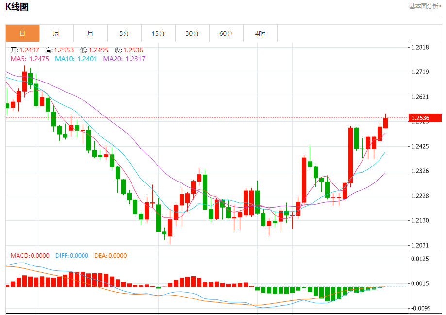 周二盘中,英镑/美元报1.2537,涨幅0.31%。