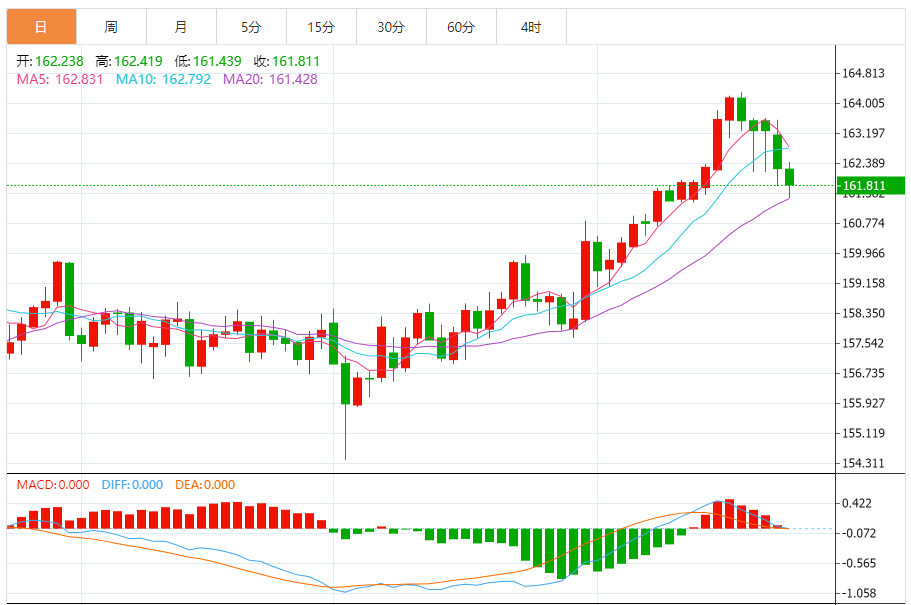 技术上,欧元兑日元昨日在额外支撑位162.10下方收阴,确认屈服于修正性看跌倾向的支配,注意到在达到161.45时遭受明显损失。