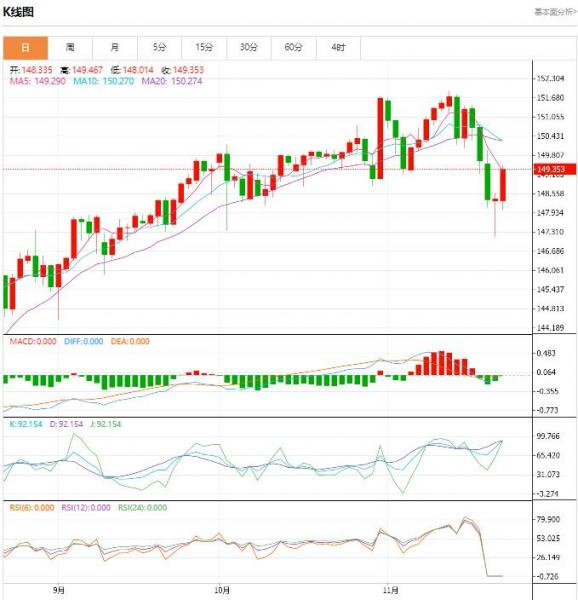 日元基础数据库 在FOMC会议纪要重申美联储将采取更谨慎但更具限制性的货币政策立场后,日元兑美元今天回吐了近期的部分涨幅。从避险角度来看,以色列和哈马斯最近达成的暂停战斗的协议给日元上涨带来了一些限制。美元最近的走软对日本央行来说可能是因祸得福,因为如果这种趋势持续下去,可能不需要干预外汇市场。今天凌晨,日本公职人员表示,由于国内需求枯竭,日本的经济前景已经被下调,这对日元构成负面影响。