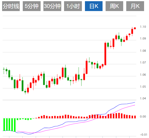 周三亚盘,欧元/美元延续了连续第五个交易日的涨势,交投于1.1000附近。美元受到美联储(Fed)欠鹰派政策立场的影响,欧元/美元因美元疲弱上涨。 |
