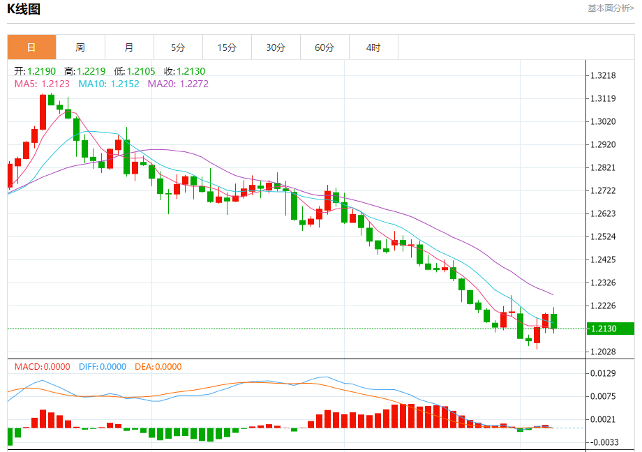 周五盘中,英镑/美元报1.2131,跌幅0.49%。