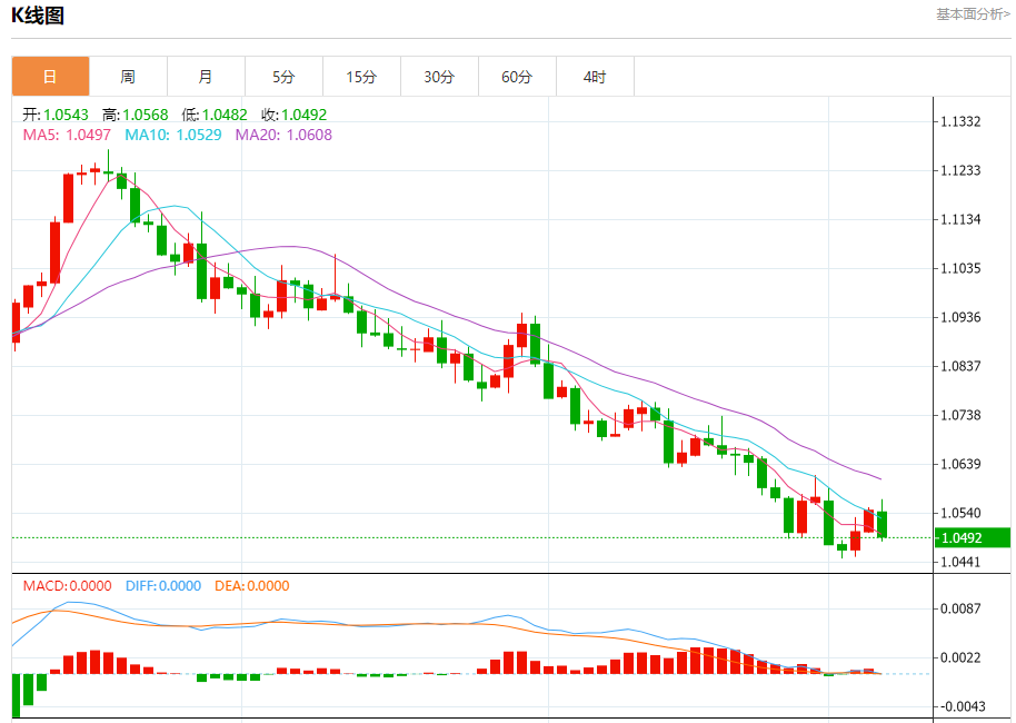 周五盘中,欧元/美元报1.0494,跌幅0.51%。