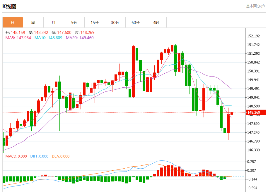 周五盘中,美元/日元报148.278,涨幅0.06%。