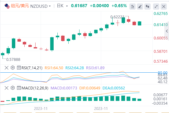 12月6日,周三亚市早盘,纽元/美元正在稳步回升。接近0.6200点。在从五个月高点0.6223大幅回调两天后,这对货币出现了缓解性反弹。 |