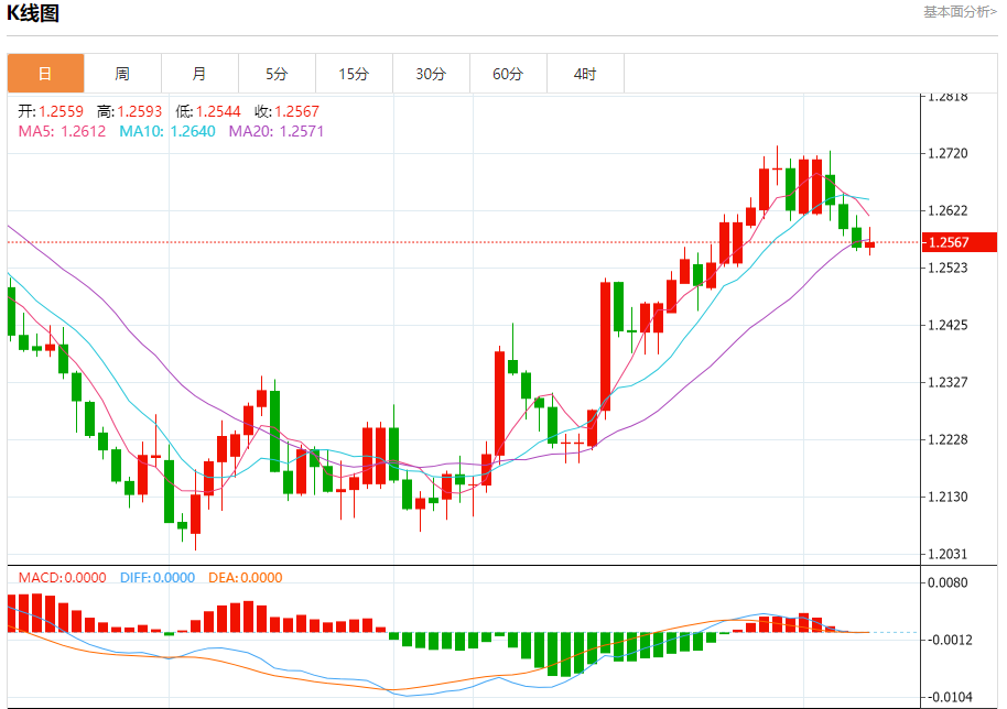 周四盘中,英镑/美元报1.2568,涨幅0.06%。