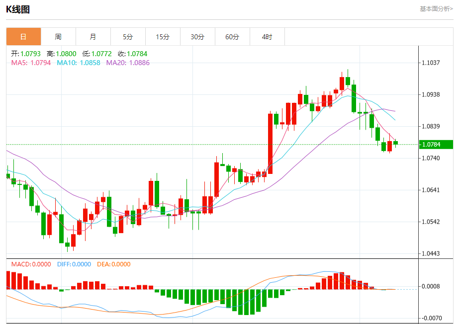 周五盘中,欧元/美元报1.0785,跌幅0.08%。