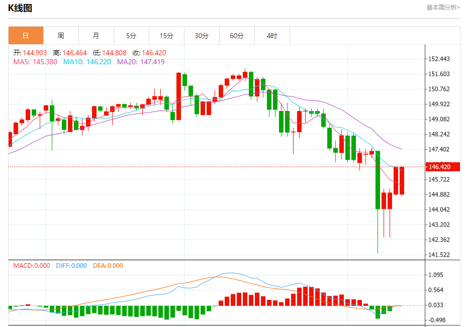 周一盘中,美元/日元报146.436,涨幅0.99%。