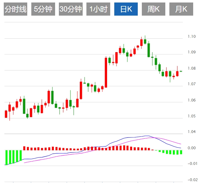 周三亚盘,欧元兑美元仍遇阻1.0800关口。联准会(Fed)和欧洲央行(ECB)将分别于周三和周四宣布利率决议。截至记者发稿时,欧元兑美元报1.0792,日内跌幅为0.04%。 |