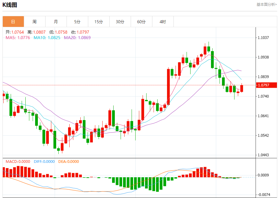 周二盘中,欧元/美元报1.0798,涨幅0.31%。