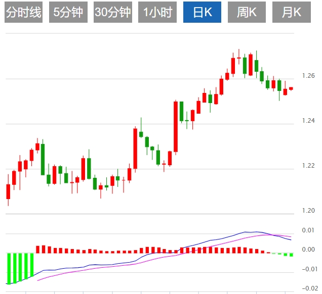 周二,英镑兑美元连续第二日获得一些积极的牵引力,但难以利用这一走势,仍低于隔夜震荡高点。英国月度就业数据公布后,现货价格波动不大,持稳在1.2580-1.2585附近,全天涨幅超过0.25%。 |