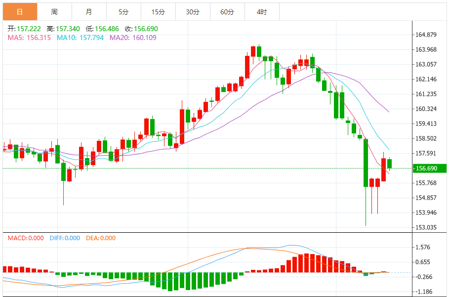 今天的预期交易范围:在157.00和155.90之间