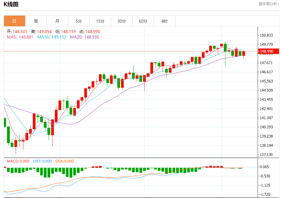 周二盘中,美元/日元报149.005,涨幅0.33%。