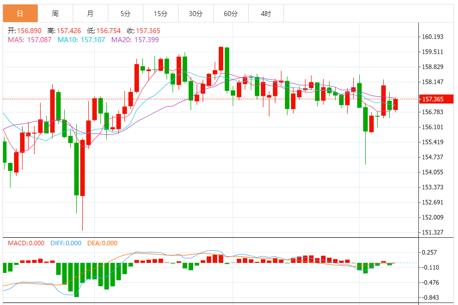 今天的预期交易范围:在157.50和156.55之间