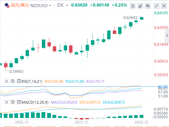 12月28日,周四亚市盘中,纽元/美元在0.6350区域上方走强。在2023年最后一周交易量疲软的情况下,美元走弱和风险偏好支撑了这对货币的上涨势头。 |
