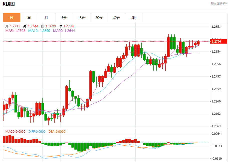 支撑位:1.2700 1.2680 1.2665