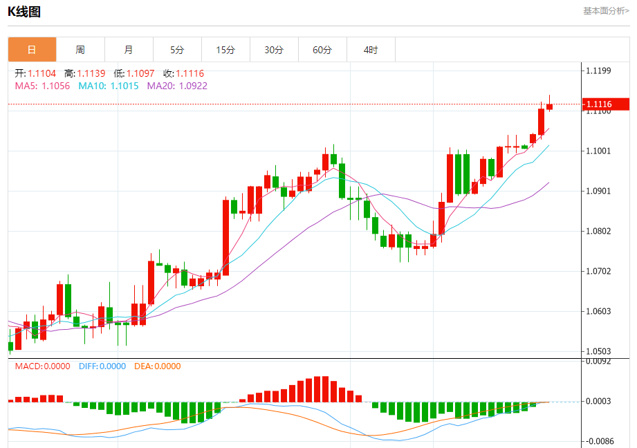 周四盘中,欧元/美元报1.1117,涨幅0.10%。