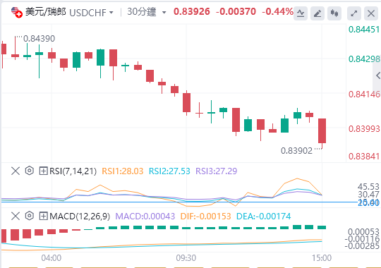 12月28日,周四欧市盘前,美元/瑞郎创下历史新低0.8394,美元/瑞郎因美元走弱而面临挑战。中东地缘政治局势的升级助长了避险情绪,导致对避险资产瑞郎的需求增加。 |