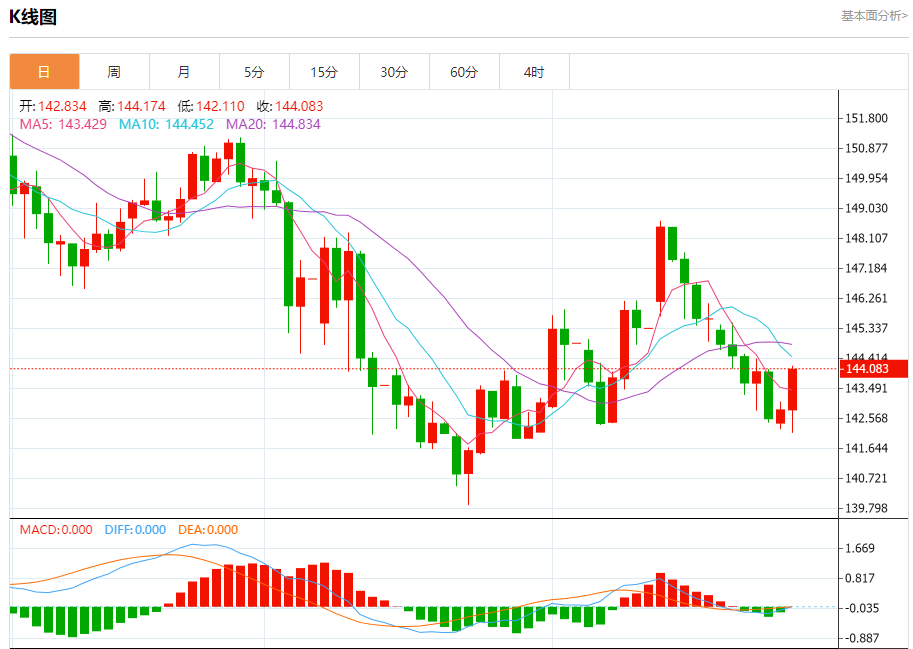 周二盘中,美元/日元报144.030,涨幅0.85%。