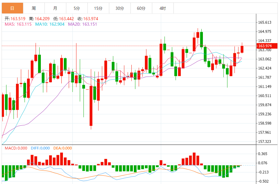 技术上,欧元兑日元汇率走高,突破163.35的关口,触及164.00的最初主要目标,然后直接反弹至突破的关口附近波动。