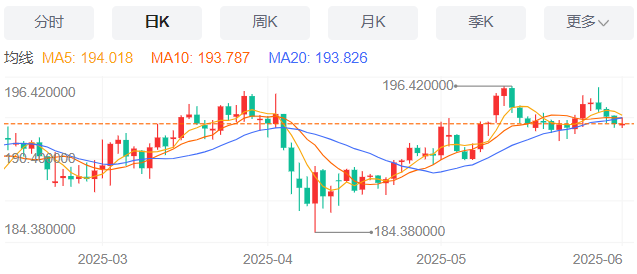 今天的预期交易区间:在192.20和194.20之间