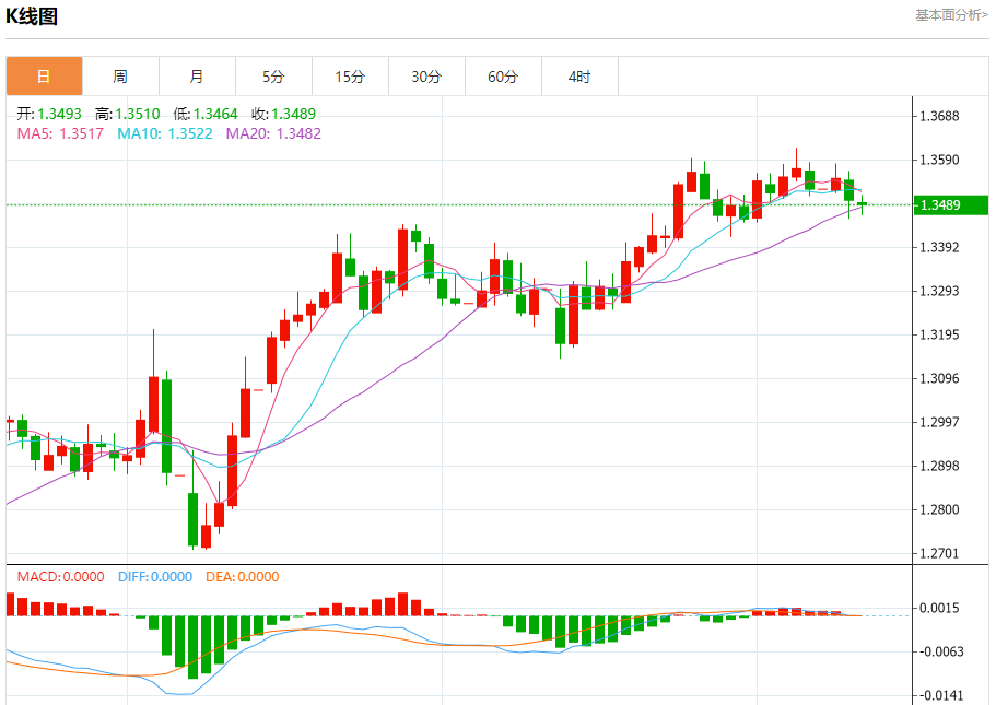周三盘中,英镑/美元报1.3495,跌幅0.03%。