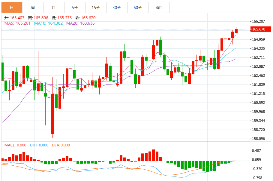 今天的预期交易区间:在165.00和166.45之间