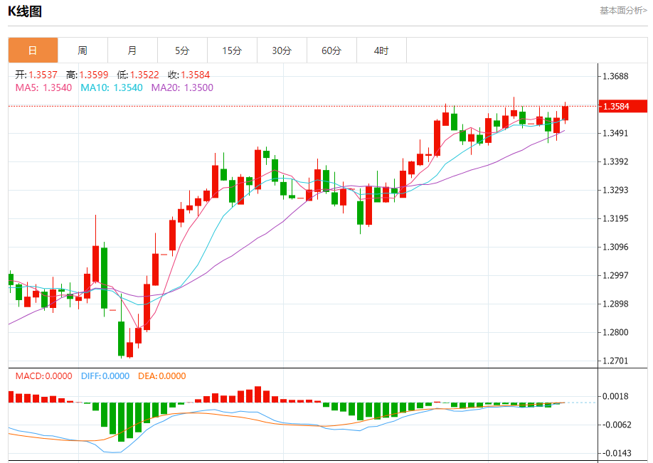 周四盘中,英镑/美元报1.3590,涨幅0.34%。
