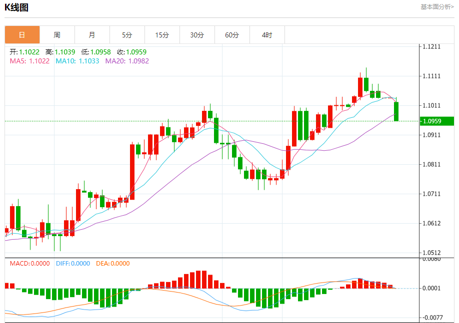 周二盘中,欧元/美元报1.0960,跌幅0.70%。
