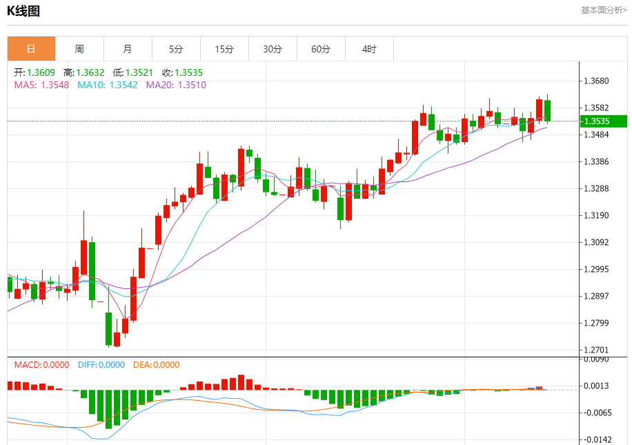 今日分析:看涨,当 1.3558 为支撑位,目标定在1.3678。