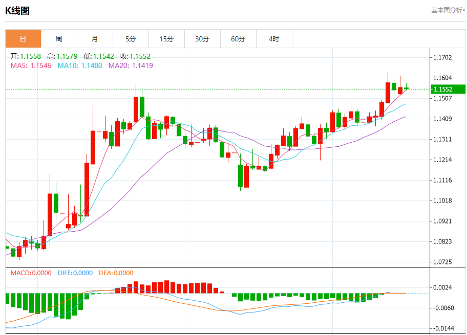 周二盘中,欧元/美元报1.1562,涨幅0.02%。