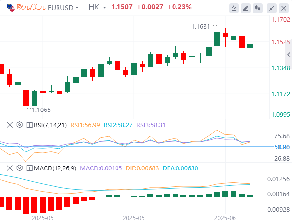6月18日,欧元/美元在前一天大幅下跌后,周三开始回升。然而,从更广泛的角度来看,中东紧张局势的升级、全球贸易的持续不确定性以及油价的急剧加速使上行尝试受到限制。 欧元现在正在努力收复1.1500水平,仍比上周的高点低近1%,随着以色列和伊朗之间的战争进入第六天,市场情绪疲软,美国对伊斯兰共和国采取了更激进的基调。 美国政府官员的评论表明,唐纳德·特朗普总统将考虑打击伊朗,以确认伊朗完全投降并结束其核计划,这让投资者感到不安,担心冲突可能会蔓延到高度动荡地区的地区战争。 原油价格周三升值超过3美元,达到接近75.00美元的水平,比5月份的价格上涨16%,对欧元构成额外压力。欧元区是原油净进口国,价格上涨将损害该地区的增长前景。 在宏观经济方面,美国零售销售数据证实了贸易不确定性对美国经济的负面影响,但美元的反应微乎其微,地缘政治紧张局势是投资者心中的焦点。 周三的焦点是美联储(Fed)的货币政策决定以及主席杰罗姆鲍威尔(JeromePowell)对如何应对增长疲软和潜在通胀上升的看法。美元将对可能改变利率预期的经济预测或点阵图的变化敏感。 以色列连续第六天继续打击伊朗。美国总统特朗普要求德黑兰当局“无条件投降”,并誓言部署更多战斗机来支持以色列军队,这清楚地表明了美国在战争中的更高承诺。 今天晚些时候,人们普遍预计美联储将利率稳定在目前的4.25%-4.5%区间,但最近看到的疲软美国数据可能促使该行缓和其鹰派立场。未来几个月降息的任何暗示都可能使美元兑欧元走低。 根据CMEFedWatch工具发布的数据,期货市场定价2025年将进行两次降息,其中第一次降息的可能性为60%。 周二的美国零售销售数据显示降幅大于预期。美国5月份消费量下降0.9%,高于预期的0.7%的收缩,4月份的读数从之前估计的0.1%下调至0.1%。 在欧元区,周二公布的德国ZEW经济景气指数的改善超出预期,从5月份的25.2升至6月份的47.5,超过市场预期的35.0。然而,这些数据并未为欧元提供任何重大支撑。 欧元/美元技术分析 欧元/美元周二跌破三角形模式,确认了与上周高点1.1600上方的更深反转。该货币对在周三小幅上涨,但4小时相对强弱指数(RSI)仍低于50水平,表明看跌势头可能会增强。 该货币对已返回1.1500上方,并可能重新测试破碎三角形的底部,目前位于1.1545,然后继续走低。直接支撑位在周二的低点1.1477。接下来的目标是1.1370(6月6日和10日的低点)和1.1315(5月30日的低点)。 从好的方面来看,确认上述1.1545上方将缓解看跌压力,并使1.1630-1.1640区域(6月12日和16日高点)重新成为焦点。 |