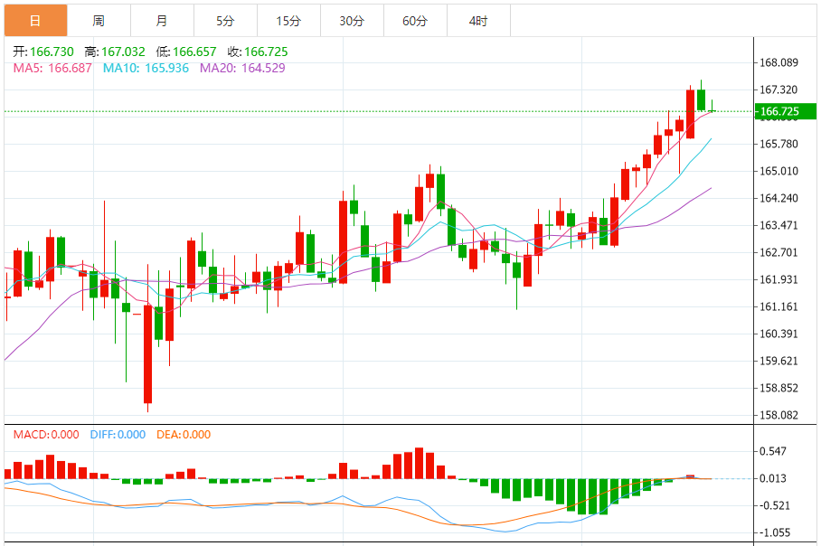 周三,欧元/日元下跌0.02%至166.759附近。