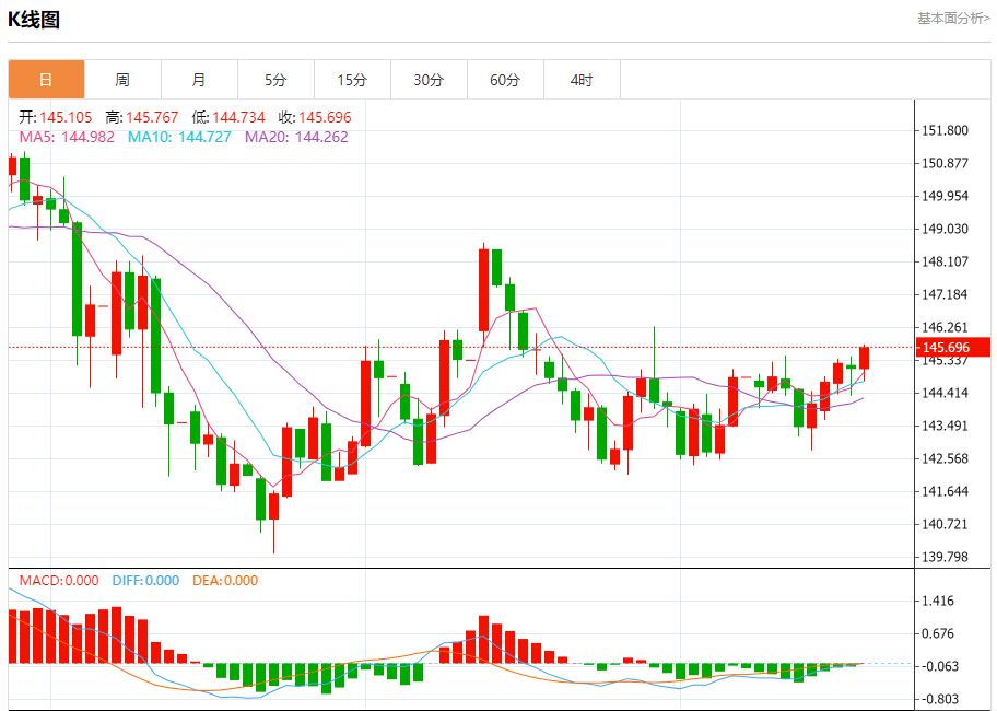 技术点评:在145.20之上,为多头信号,向上的目标位为146.00。