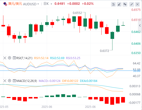 XM外汇官网:外汇市场最新行情走势展望:澳元/美元多头需要等待突破0.6535-0.6540区间2025-06-25 17:21:34