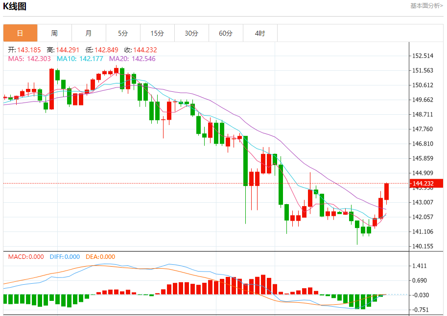 周四盘中,美元/日元报144.247,涨幅0.66%。