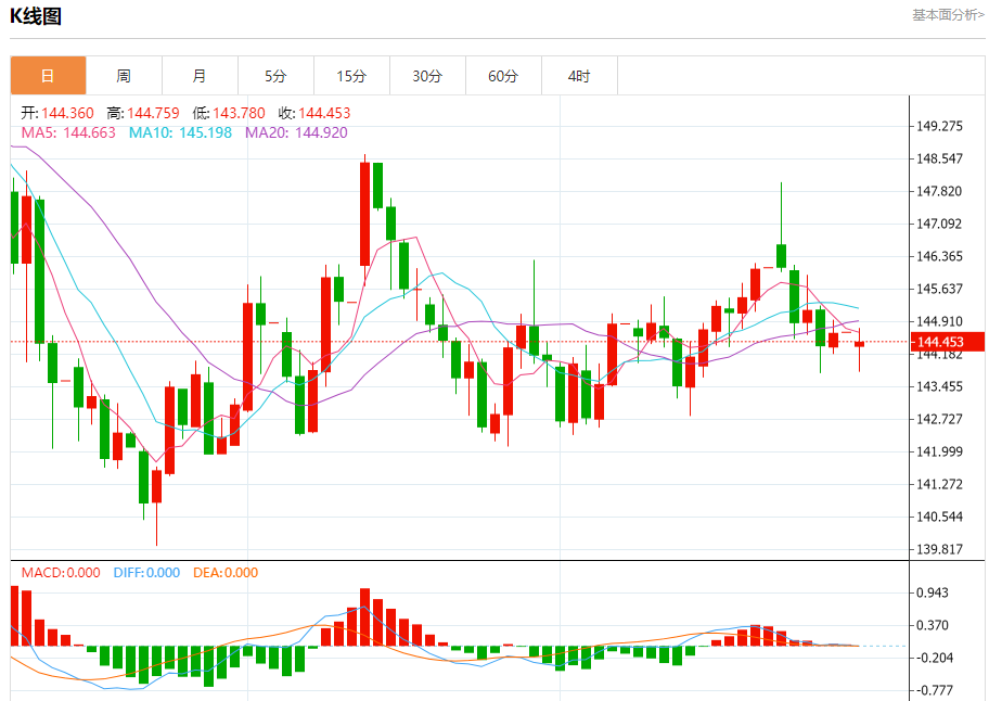 周一盘中,美元/日元报144.427,跌幅0.17%。