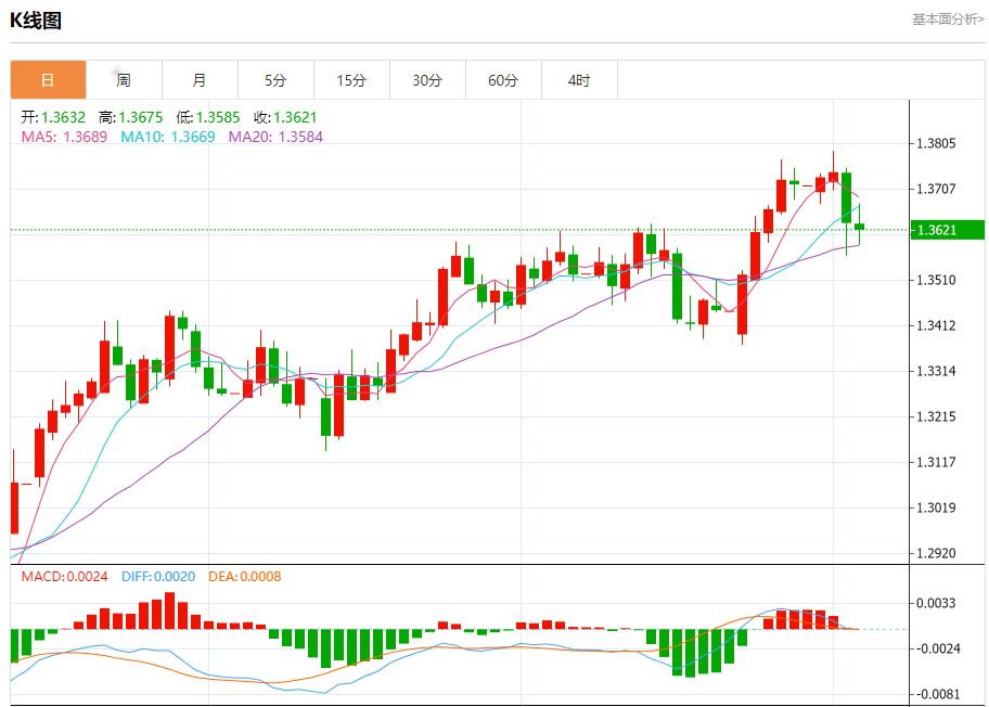 今日分析:在 1.3620 之上,看涨,目标价位为 1.3710 ,然后为 1.3750 。