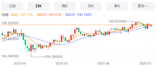 今天的预期交易区间:在196.80和198.80之间