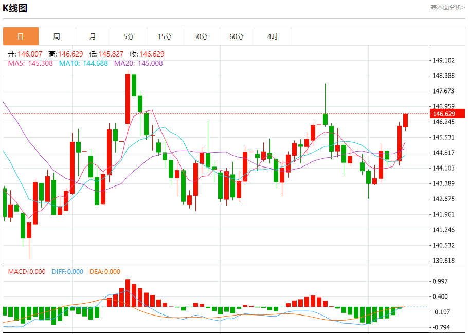 技术点评:在145.70之上,为多头信号,向上的目标位为146.70。