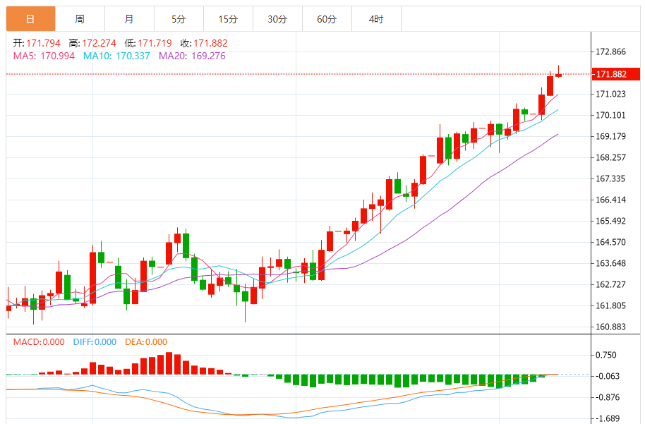 技术上,欧元兑日元今天早上以新的积极态度开始,超过了看涨通道在171.70水平的阻力,在172.25附近获得了一些额外的收益。