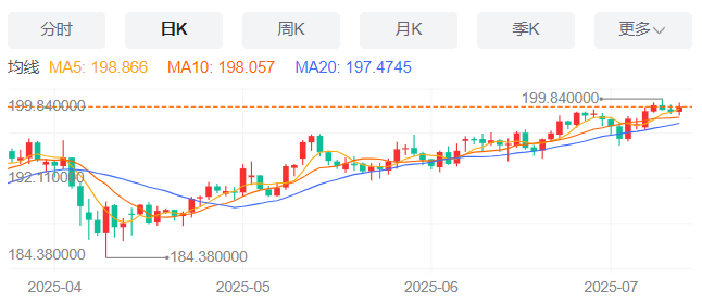 周五,英镑/日元上涨0.27%至199.11附近。
