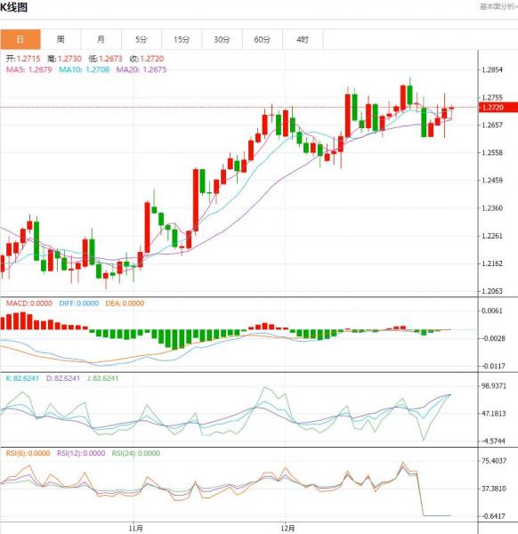 价格行动目前位于下降趋势线上方,该趋势线起到支撑作用,但严重缺乏动能可能会扼杀看涨突破,尤其是在CPI意外下行的情况下。通胀正在走低,并获得动能——这让美联储在12月的经济预测摘要中大胆下调2024年联邦基金利率中值。因此,根据数据,本周可能会看到DXY的长期下跌趋势延续,并向101.90迈进。英镑兑美元的整固保持不变,但不能放弃最近的高点英镑/美元的看涨势头似乎已经停滞,MACD证明了这一点。价格走势也显示出不愿长时间交易在1.2736上方。此外,在该水平附近和略高于该水平的多个上方灯芯出现。