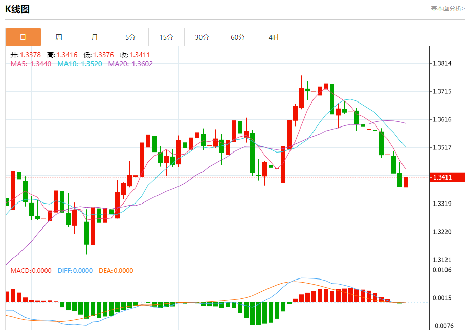 周三盘中,英镑/美元报1.3411,涨幅0.23%。