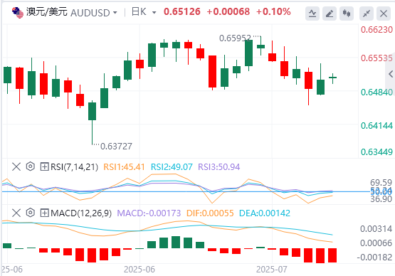 7月21日,周一欧洲早盘,澳元/美元下跌,收复了前一交易日的近期涨幅。在中国人民银行(PBoC)决定将其1年期和5年期贷款最优惠利率(LPR)分别维持在3.00%和3.50%不变后,澳元/美元货币对仍然低迷。值得注意的是,中国经济的任何变化都可能影响澳元,因为中国和澳大利亚是紧密的贸易伙伴。 澳元还受到美国(US)和中国之间普遍存在的贸易紧张局势的下行压力。8月12日将是中美敲定长期关税协议的最后期限,此前中国已于上个月达成结束加征关税的初步协议。 在即将发布的澳大利亚储备银行(RBA)会议纪要之前,交易员采取谨慎态度。经济学家预计,澳洲联储将在今年晚些时候开始放松货币政策,预计到2026年初,现金利率将降至3.1%左右。这一前景的基础是平衡的劳动力市场和对经济增长的谨慎乐观观点。交易员还将等待澳洲联储行长米歇尔·布洛克(MicheleBullock)的讲话。 密歇根大学(UoM)7月份消费者信心指数初值从6月份的60.7攀升至61.8,超过预期的61.5。现状和预期成分股均有所改善,反映出美国家庭持谨慎乐观态度。 FOMC行长AdrianaKugler表示,美国央行不应“在一段时间内”降低利率,因为特朗普政府关税的影响开始体现在消费者价格上。Kugler补充说,限制性货币政策对于保持通胀心理保持一致至关重要。 旧金山联储主席玛丽·戴利(MaryDaly)上周表示,预计今年将降息两次是一个“合理”的前景,同时警告不要等待太久。戴利补充说,利率最终将稳定在3%或更高,这高于大流行前的中性利率。 美联储理事克里斯托弗·沃勒(ChristopherWaller)周四表示,他认为美国央行应该在7月的会议上降低利率目标,理由是经济风险越来越大。沃勒补充说,推迟削减可能会在以后需要采取更积极的行动。 美国6月零售销售环比增长0.6%,前值为-0.9%。这一数字高于市场普遍预期的0.1%。与此同时,年度零售额增长3.9%,而5月份增长3.3%。 美国生产者价格指数(PPI)6月份出人意料地保持不变,而市场普遍预期上涨0.2%。与此同时,核心PPI同比上涨2.6%,高于前值的3.0%,低于预期的2.7%。 最新的美联储褐皮书显示,虽然整体商业活动保持健康,通胀压力相对温和,但潜在成本压力正在增加,企业经营者仍然谨慎。 特朗普总统周三在接受RealAmerica'sVoice网络采访时表示,他希望美联储主席杰罗姆·鲍威尔(JeromePowell)辞职,但如果总统罢免他,将扰乱市场。他还提到了与欧洲达成协议的可能性。关于对加拿大的关税,他说现在发表评论还为时过早。然而,与印度的关税协议非常接近。 中国商务部长王文涛周五表示,中美经贸关系经历了风雨,但对彼此仍然很重要。文涛还表示,互惠互利是美中商业关系的精髓。他补充说,日内瓦协议、伦敦框架有效地稳定了商业关系,为紧张局势降温。 中国经济第二季度年增长率为5.2%,而第一季度增长5.4%,预期增长5.1%。与此同时,中国第二季度国内生产总值(GDP)增长1.1%,而市场普遍预期增长0.9%。此外,6月份零售额同比增长4.8%,高于预期的5.6%和之前的6.4%,而工业生产为6.8%,高于预期的5.6%。 澳元/美元技术分析 澳元/美元周一交投于0.6510附近。日线图的技术分析表明,随着该货币对在上升通道形态内盘整,看涨偏见很活跃。然而,14天相对强弱指数(RSI)仍低于50关口,表明看跌偏见正在加强。此外,该货币对仍低于九日指数移动平均线(EMA),表明短期价格动能较弱。 下档方面,主要支撑位出现在50日均线0.6490。跌破该水平将削弱短期价格势头,并促使澳元/美元将目标瞄准上升通道下边界0.6460附近,与7月17日创下的三周低点0.6454一致。 澳元/美元货币对可能会测试0.6521的9日均线的直接关口。突破该水平可能会增强短期价格动能,并支持该货币对接近7月11日触及的八个月高点0.6595。 |