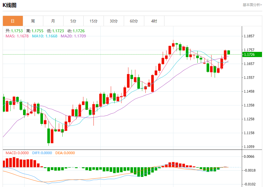周三盘中,欧元/美元报1.1723,跌幅0.27%。
