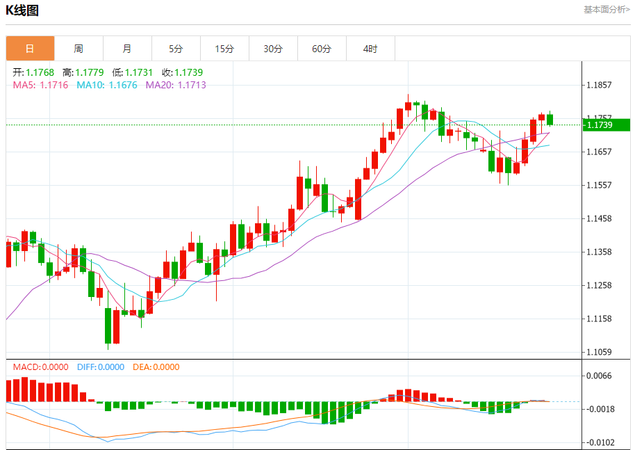 周四盘中,欧元/美元报1.1741,跌幅0.25%。