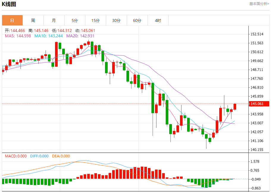 周三盘中,美元/日元报145.066,涨幅0.41%。